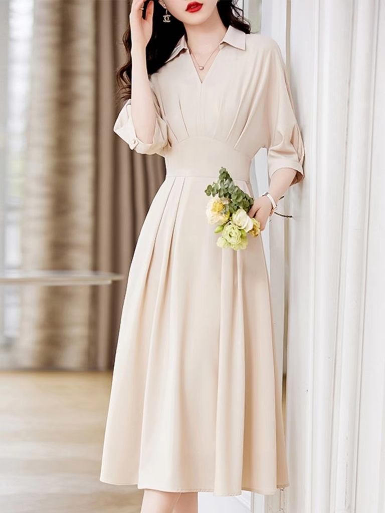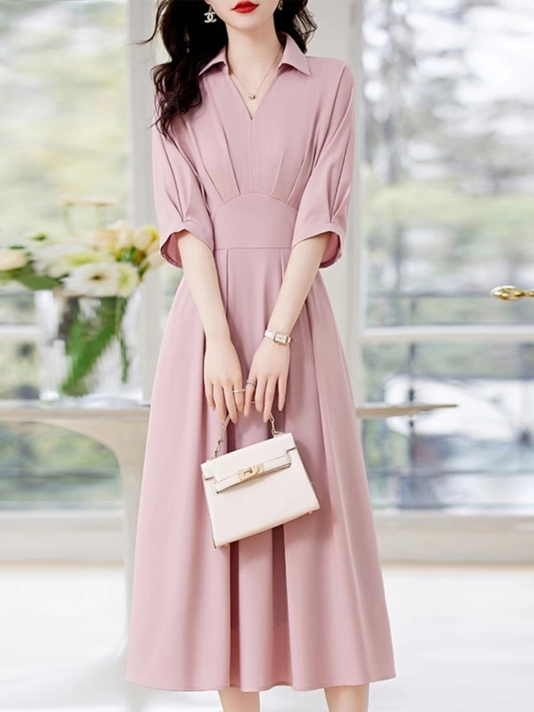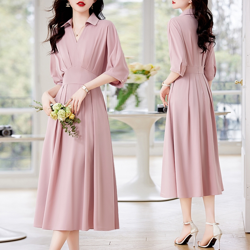 Mã B970: Đầm váy sơ mi nữ dáng dài chiết eo thanh lịch pc Hàn