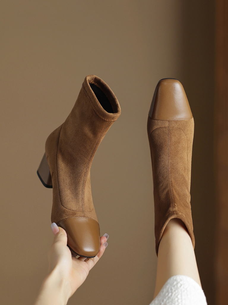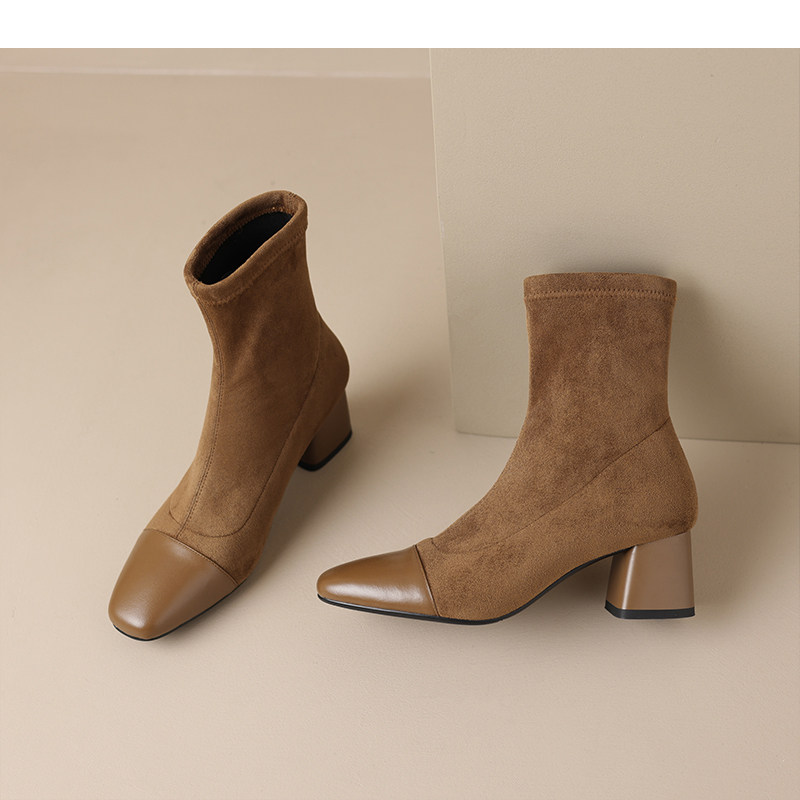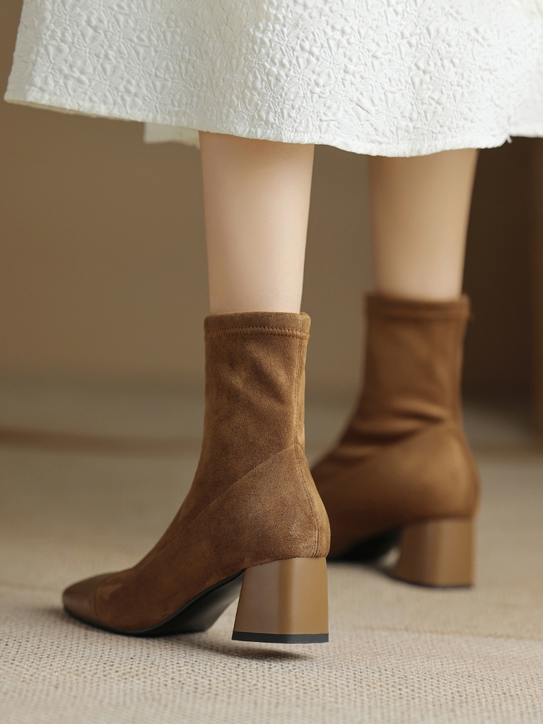 OC886: Giày bốt nữ da lộn mũi nhọn kiểu Pháp Giày bốt Martin