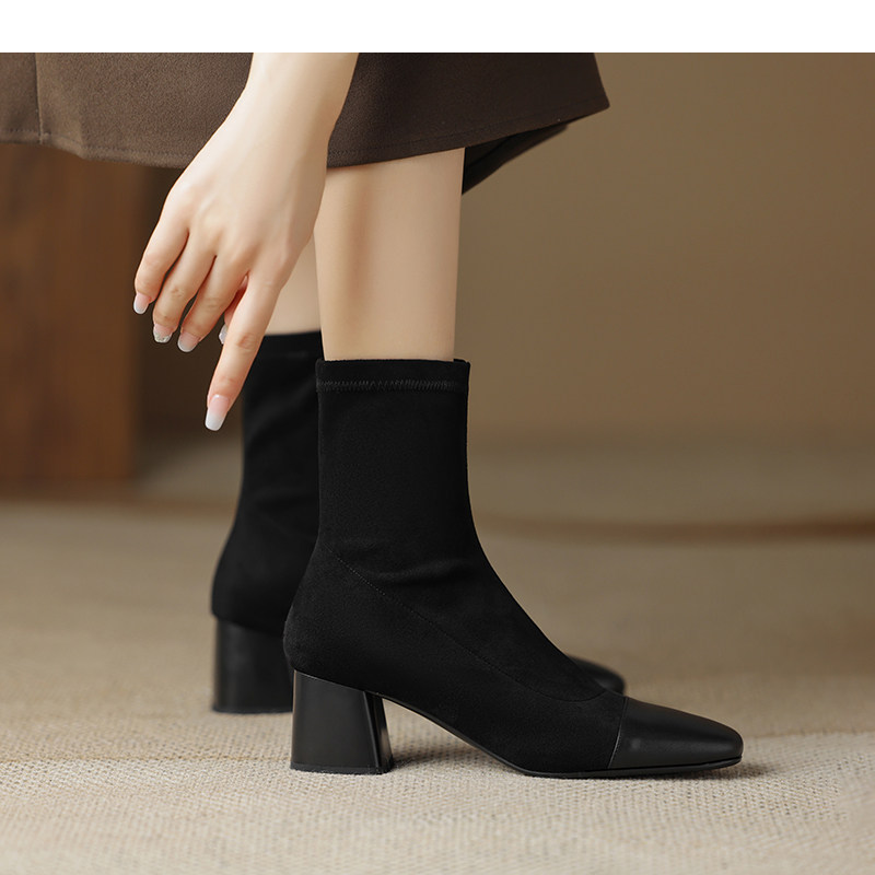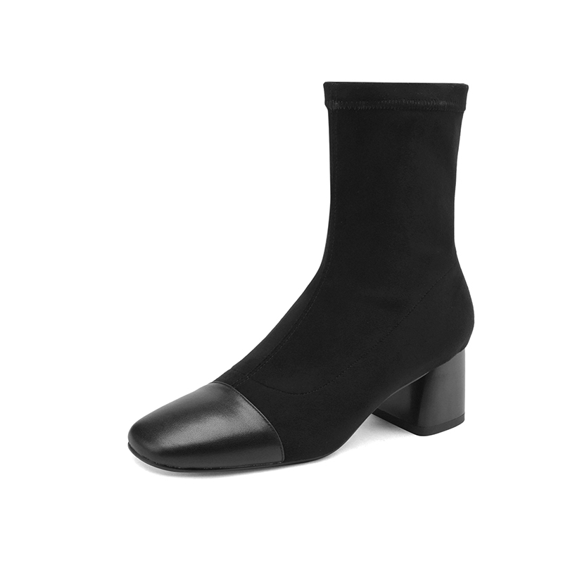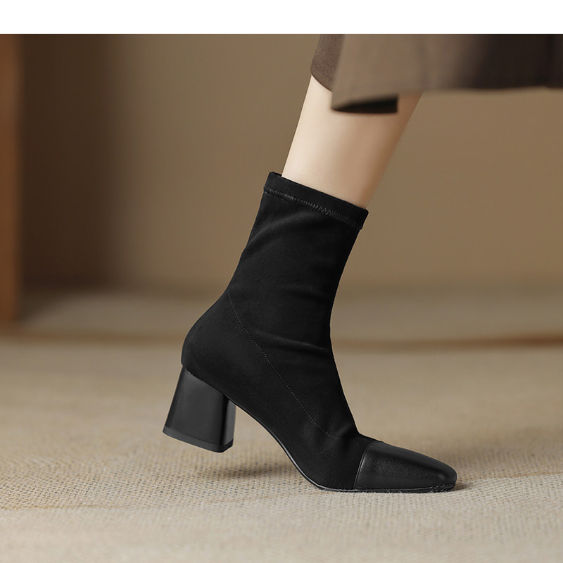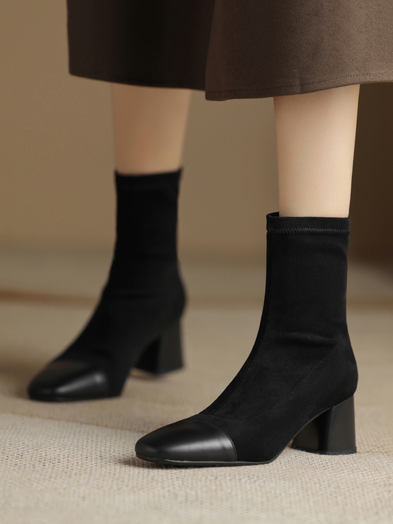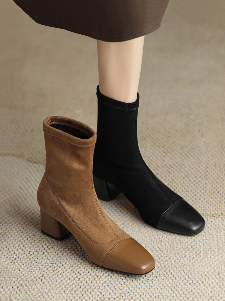 • Đôi boot này mang thiết kế đơn giản và thanh lịch, phù hợp với phong cách thời trang hiện đại. Với ngón chân vuông và kiểu dáng skinny, đôi bốt ôm sát chân, tôn lên vẻ đẹp tự nhiên và gọn gàng. Chất liệu thun co giãn giúp đôi giày dễ dàng vừa vặn và thoải mái khi di chuyển. Gót khối trung bình mang lại sự vững chãi và dễ chịu, đồng thời giữ được nét hiện đại và tinh tế. Độ dài rất ngắn củ của bốt là điểm nhấn hoàn hảo, giúp phối hợp dễ dàng với nhiều loại trang phục trong mùa xuân thu.
