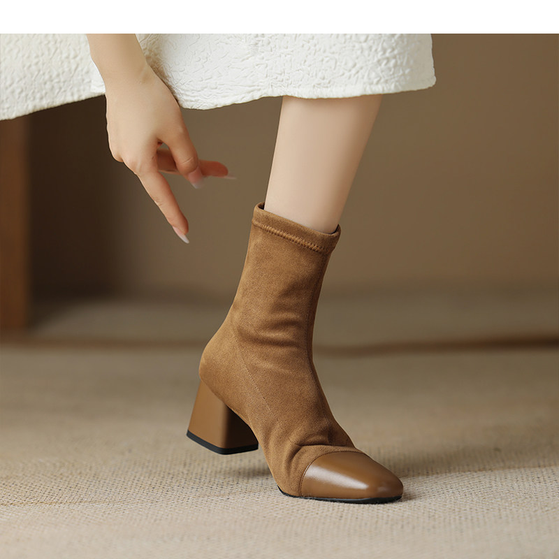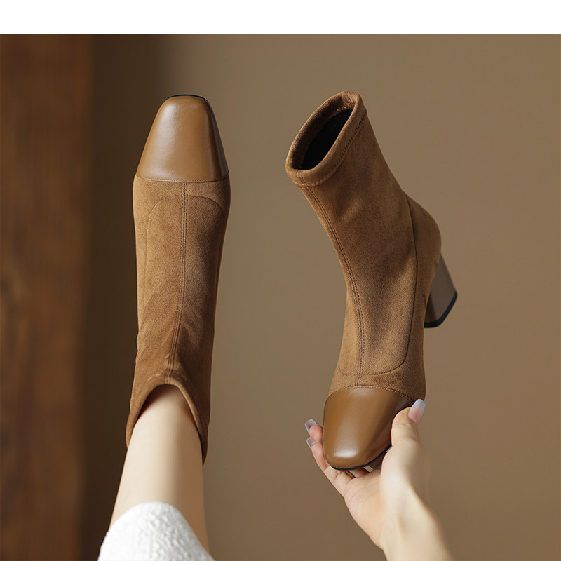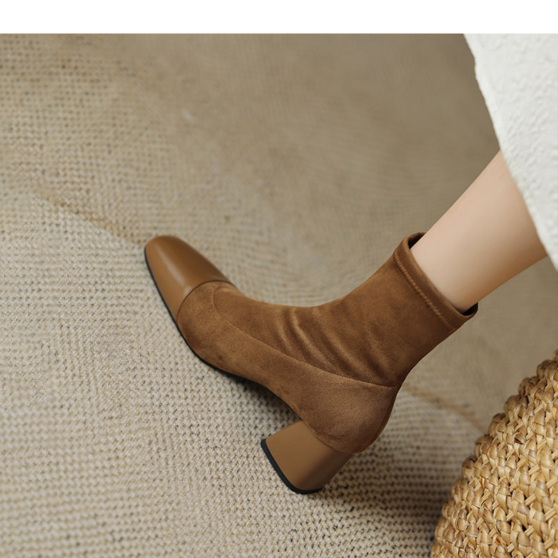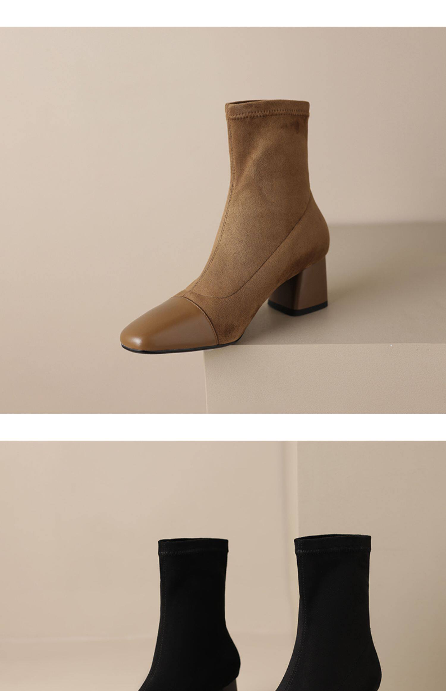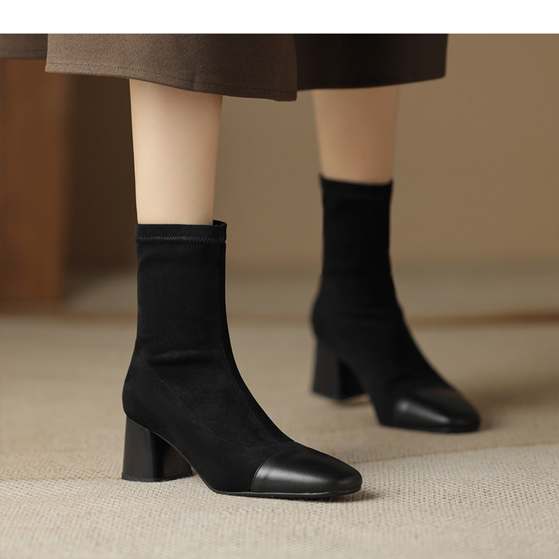 • Đôi boot này mang thiết kế đơn giản và thanh lịch, phù hợp với phong cách thời trang hiện đại. Với ngón chân vuông và kiểu dáng skinny, đôi bốt ôm sát chân, tôn lên vẻ đẹp tự nhiên và gọn gàng. Chất liệu thun co giãn giúp đôi giày dễ dàng vừa vặn và thoải mái khi di chuyển. Gót khối trung bình mang lại sự vững chãi và dễ chịu, đồng thời giữ được nét hiện đại và tinh tế. Độ dài rất ngắn củ của bốt là điểm nhấn hoàn hảo, giúp phối hợp dễ dàng với nhiều loại trang phục trong mùa xuân thu.
