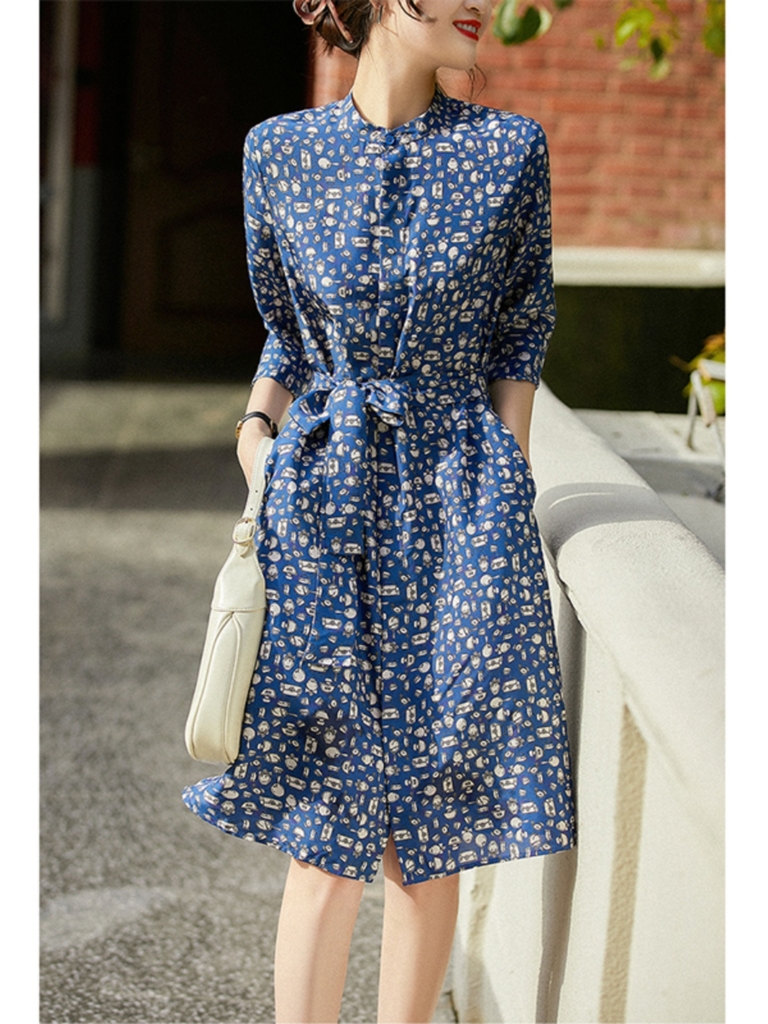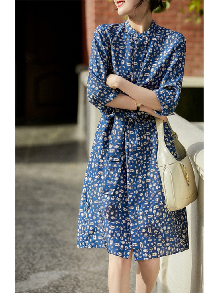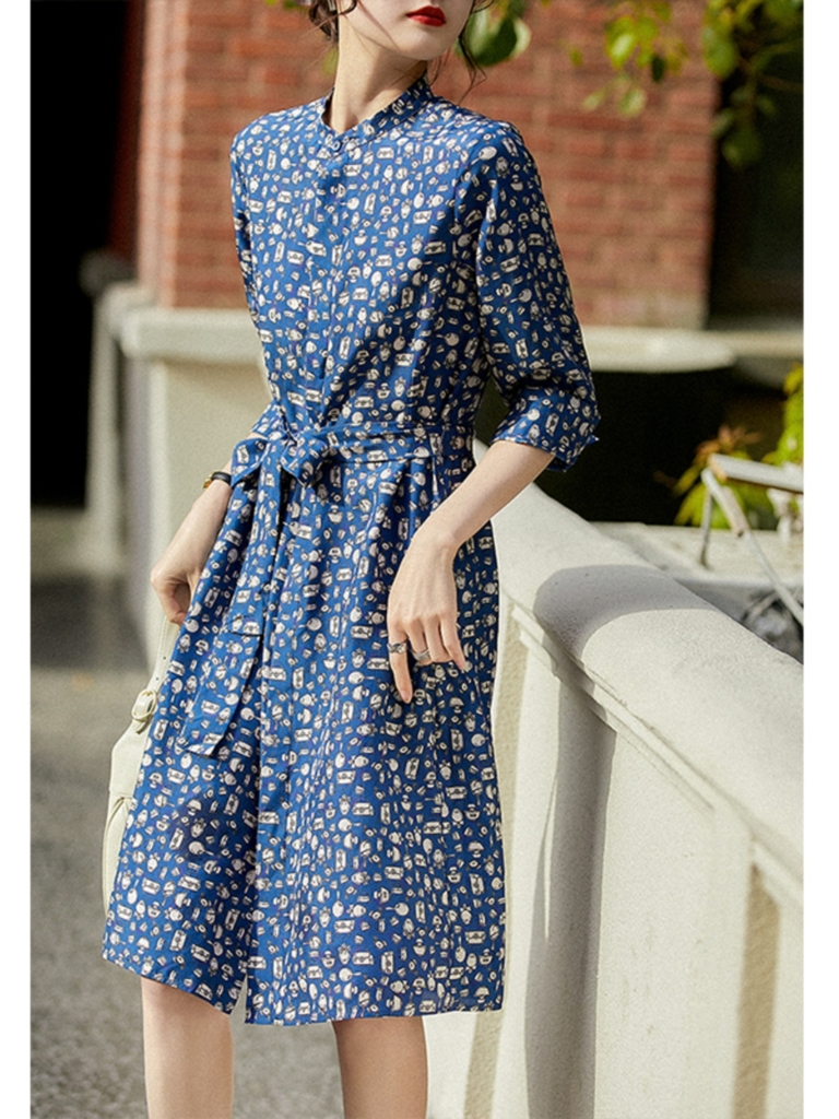 OD210: đầm họa tiết xanh dáng dài