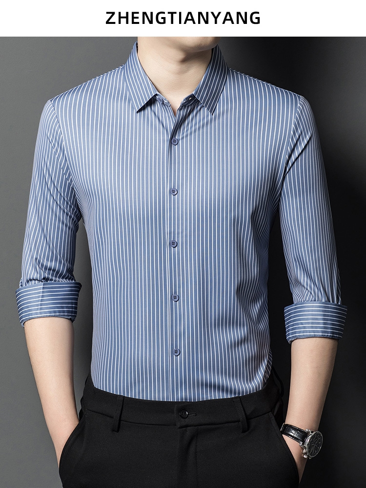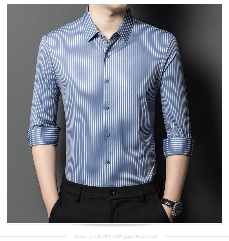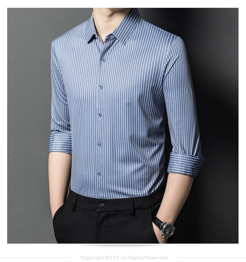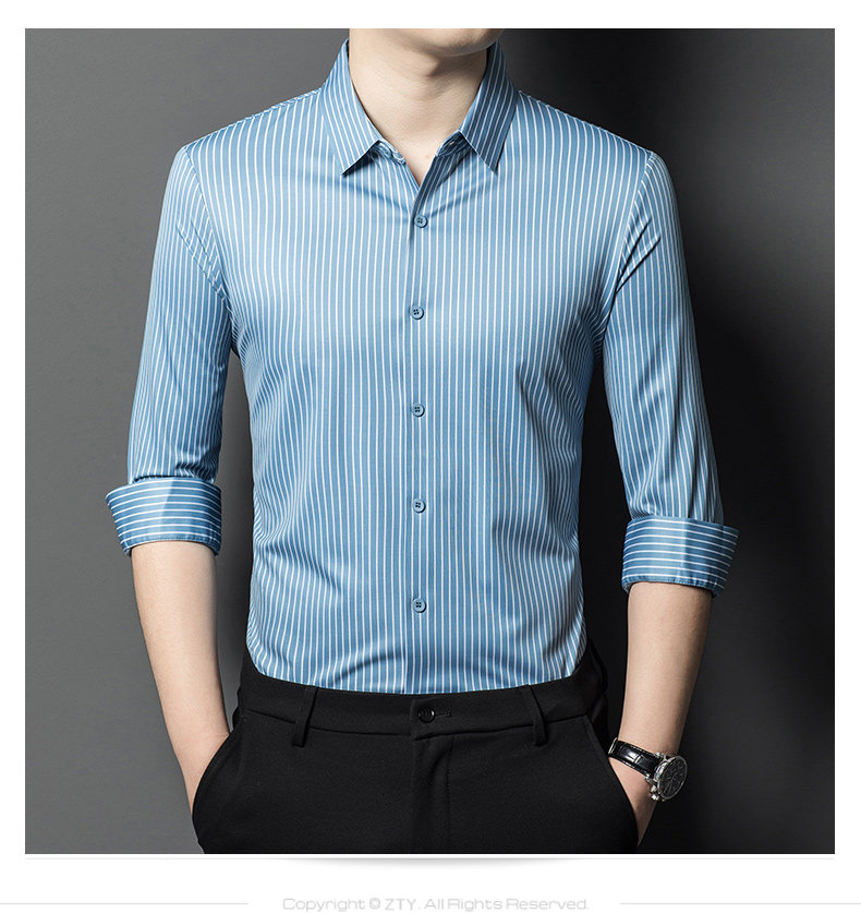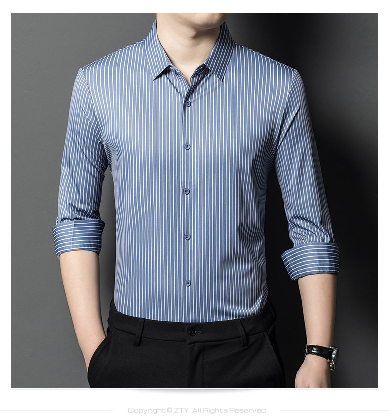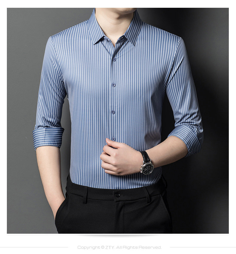• Áo sơ mi nam làm từ lụa dâu tằm, mang đến cảm giác mềm mại và sang trọng. Phiên bản Hàn Quốc với thiết kế sọc dọc tạo phong cách tinh tế và hiện đại, phù hợp cho môi trường công sở và trang phục thường ngày.
