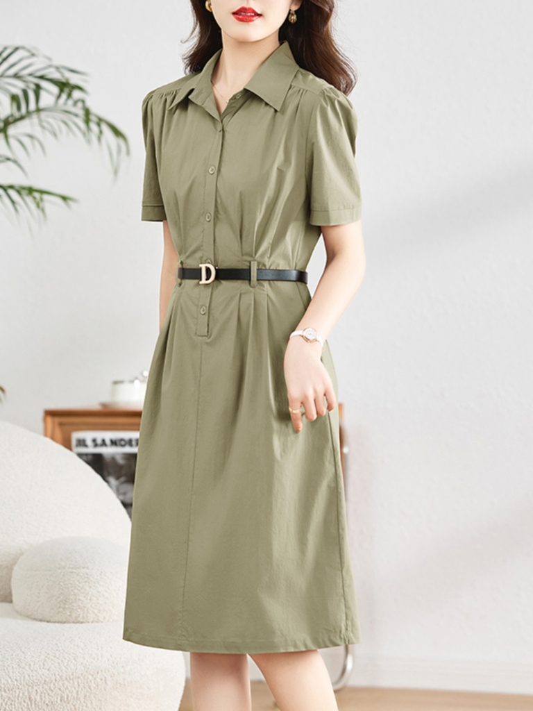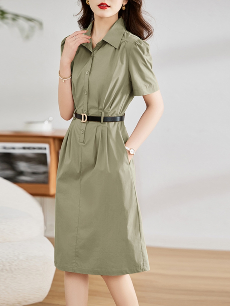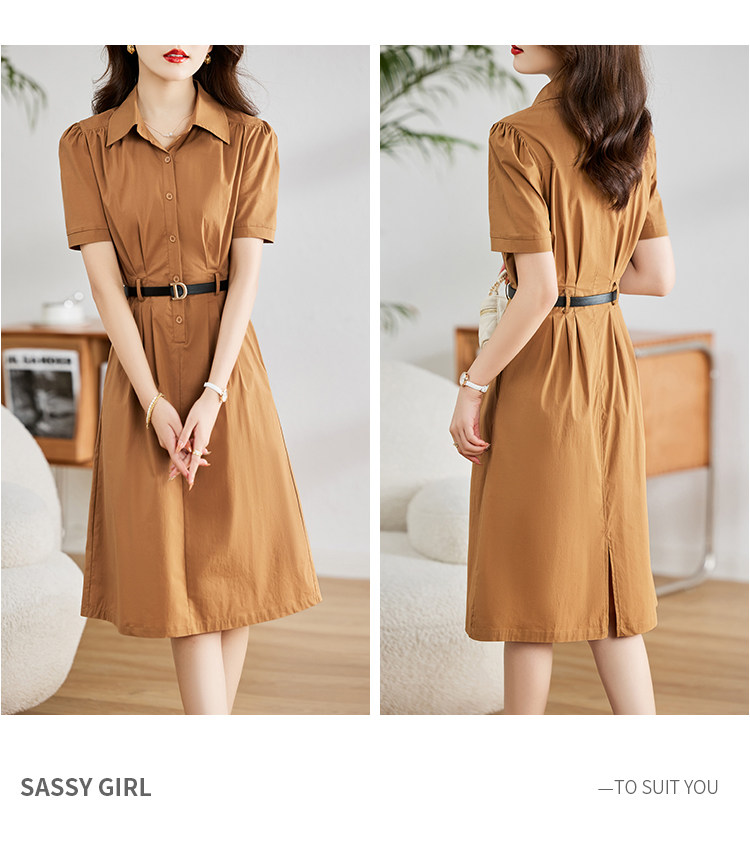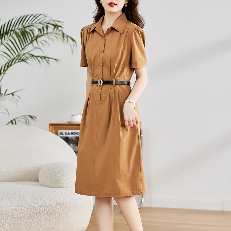 OD558: Đầm sơ mi cotton ngắn tay trang trọng