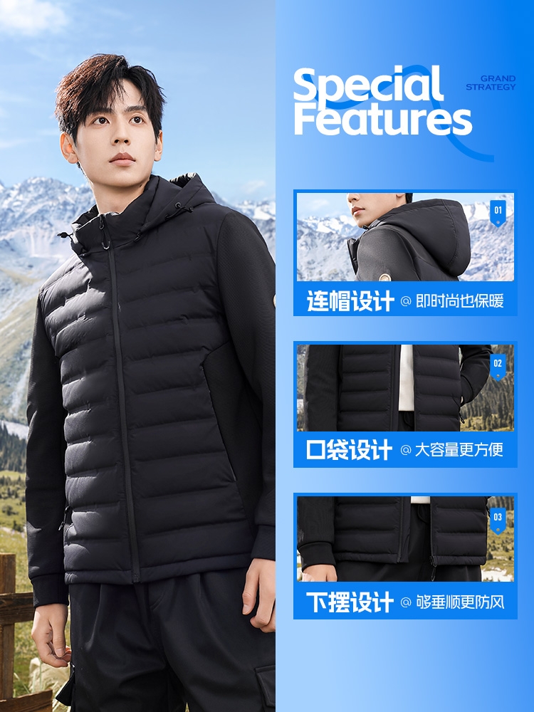 • Sản phẩm OE188: Áo khoác lông vũ nhẹ Snow Flying dành cho nam ngắn mùa đông được phân phối với 3 phiên bản: Đen, Caramen, Trắng sữa