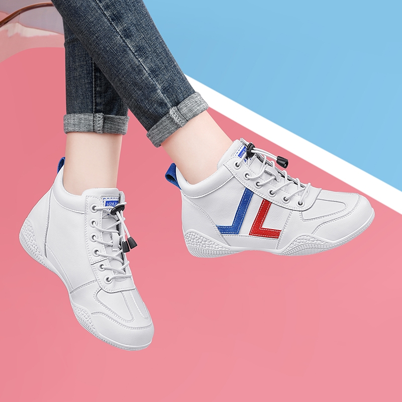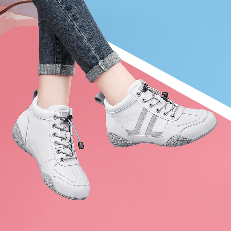 OE362: Giày thể thao nữ cổ cao màu trắng da thật giày bệt cho nữ