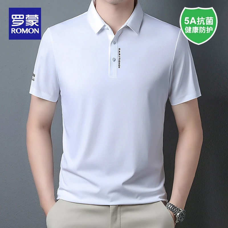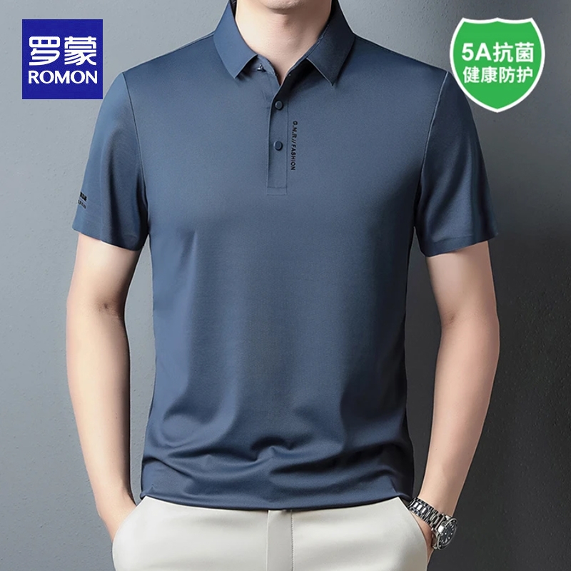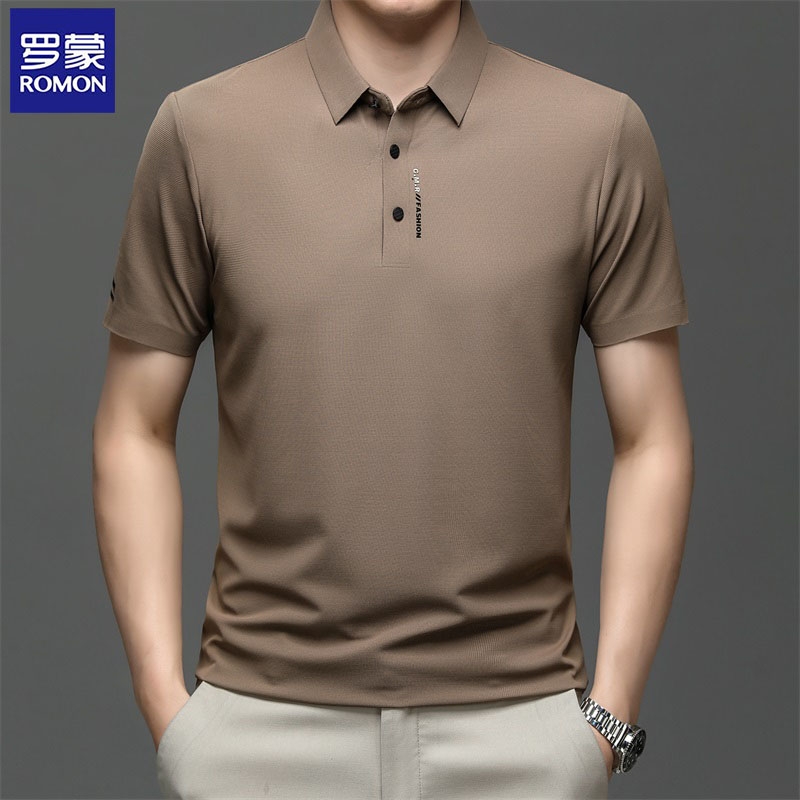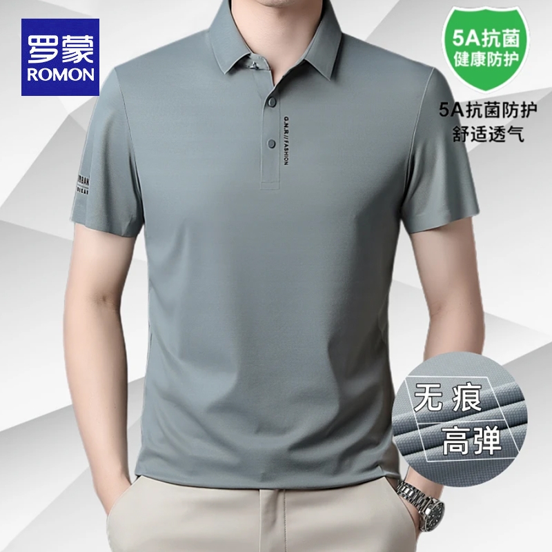 OE846: Áo thun nam tay ngắn Romon mùa hè trơn màu vải lụa lạnh không đường may chống nhăn