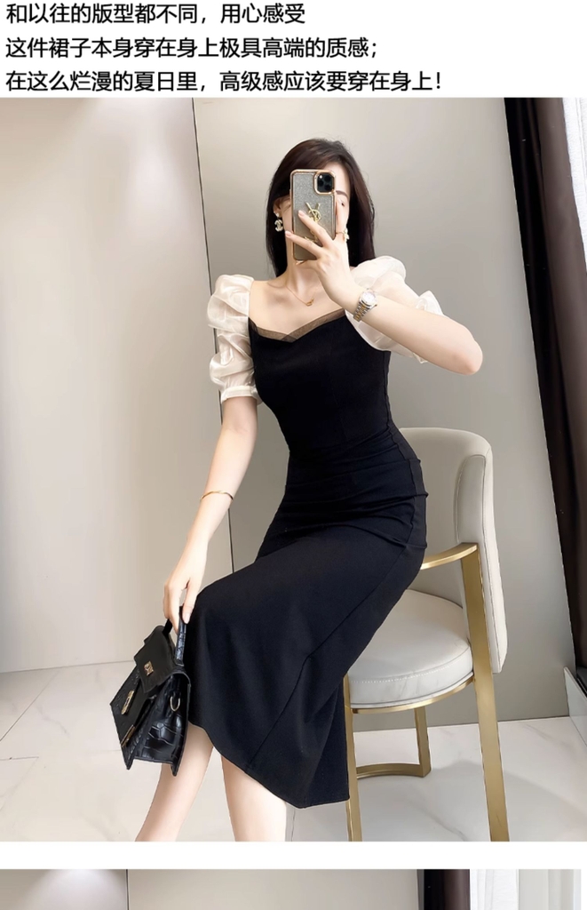 OE914: Váy đen tay ngắn mùa hè mới cho nữ OE914: Váy đen tay ngắn mùa hè mới cho nữ