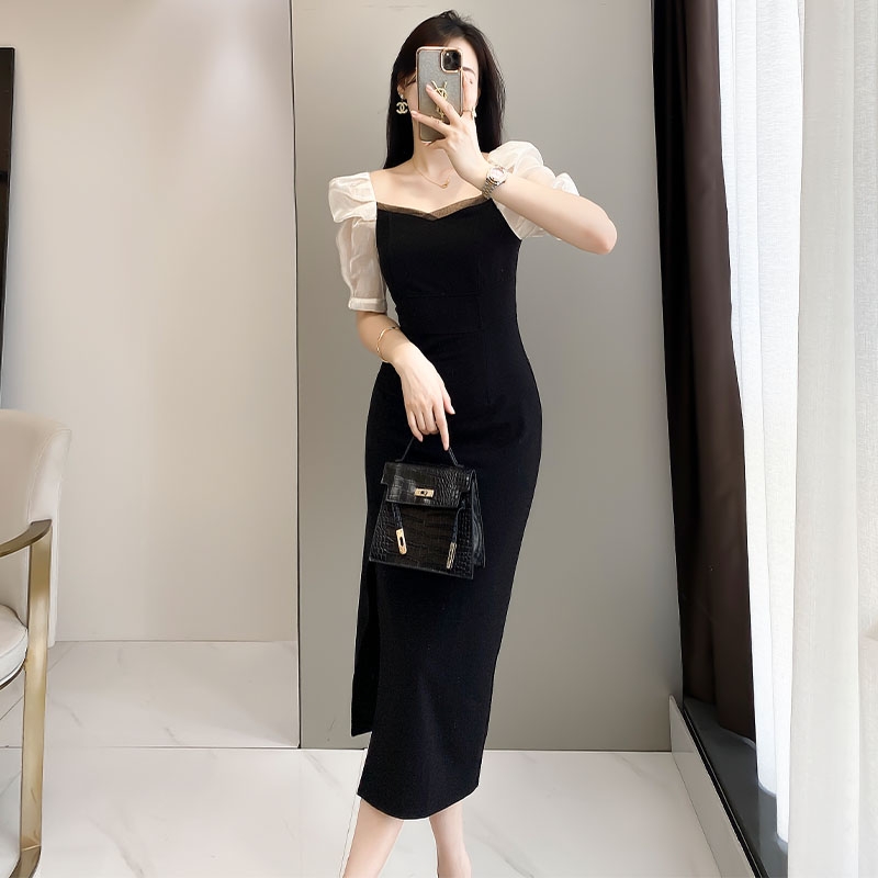 OE885: Váy xẻ tà cao cấp màu đen ôm sát dành cho nữ