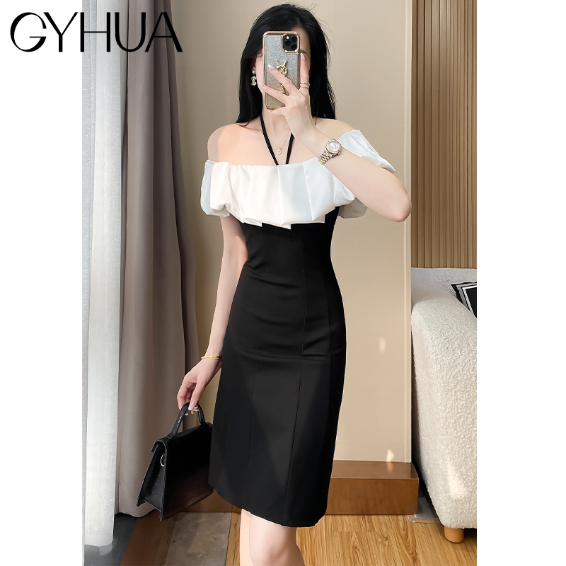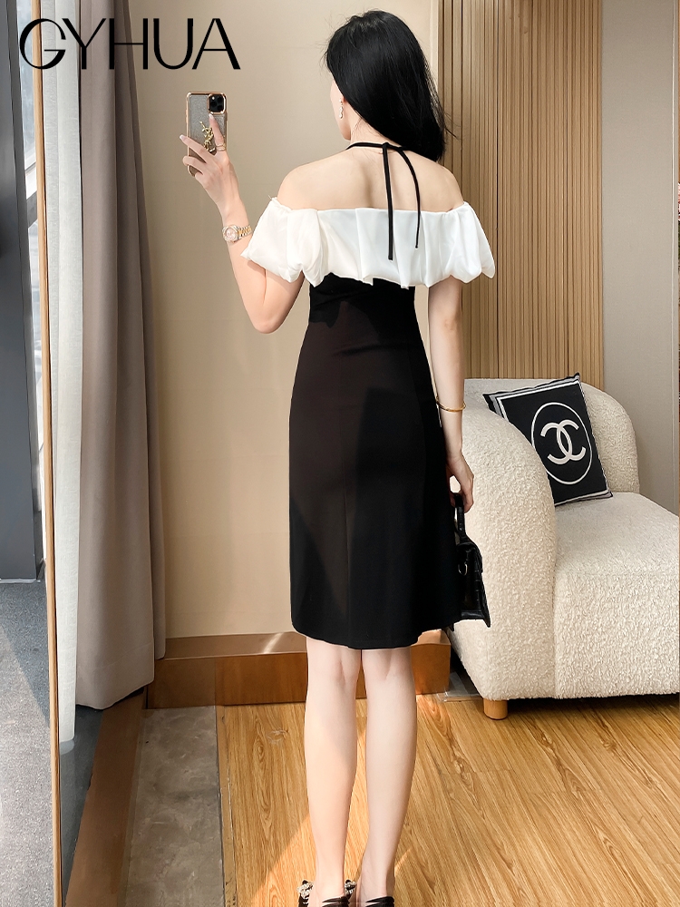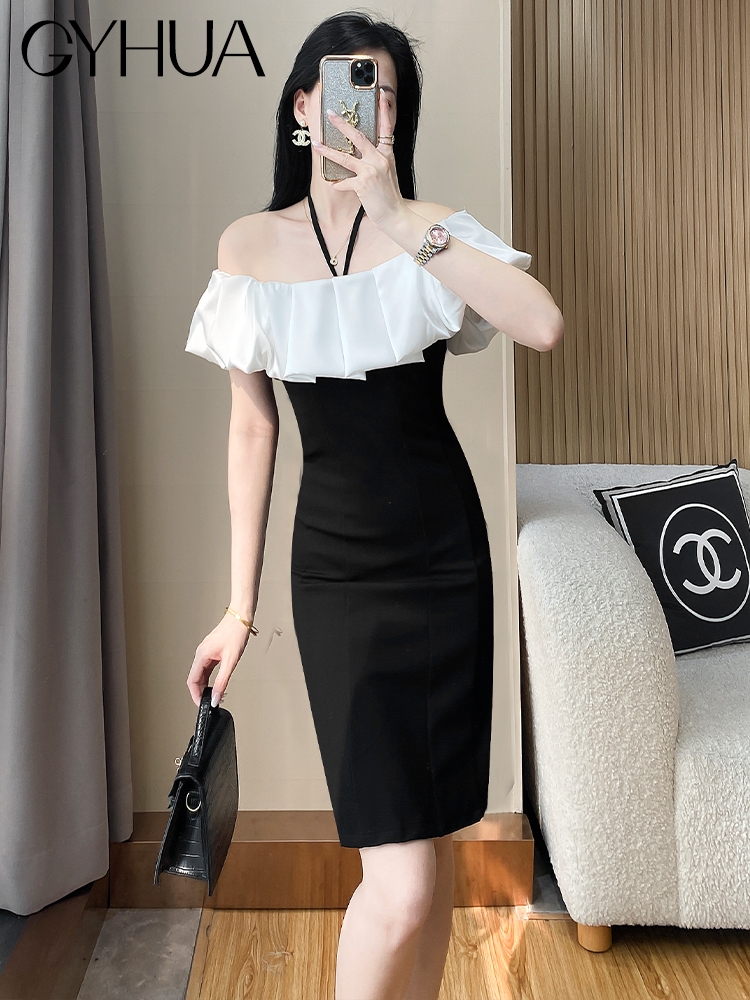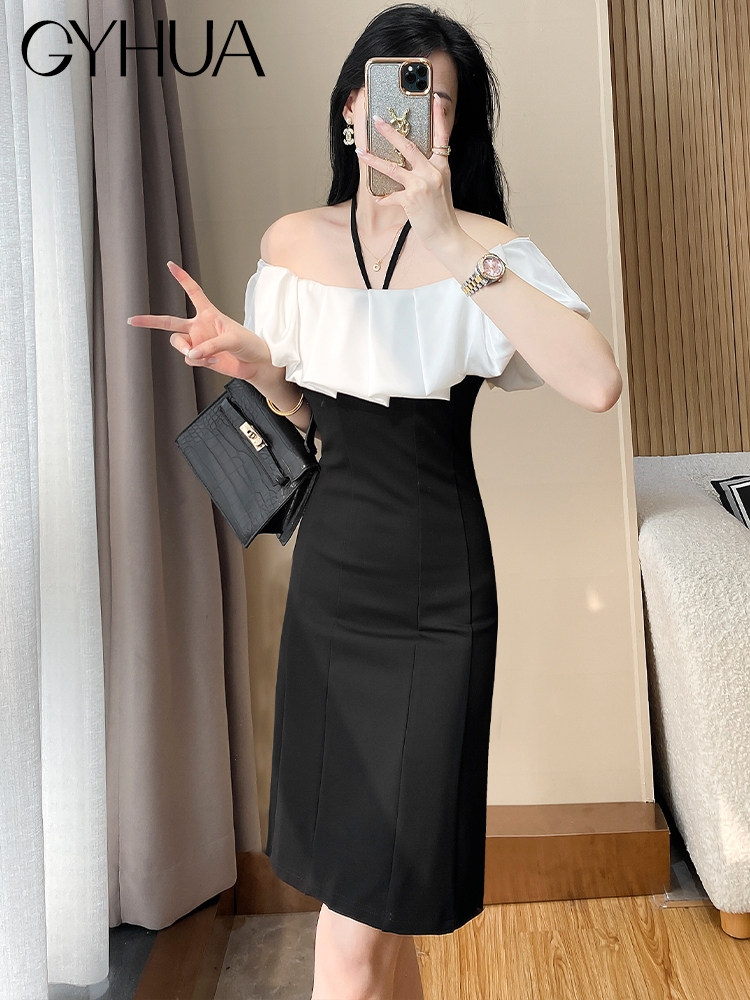 OE893: Váy nữ mùa hè mới ôm sát gợi cảm hở vai váy ngắn cao cấp