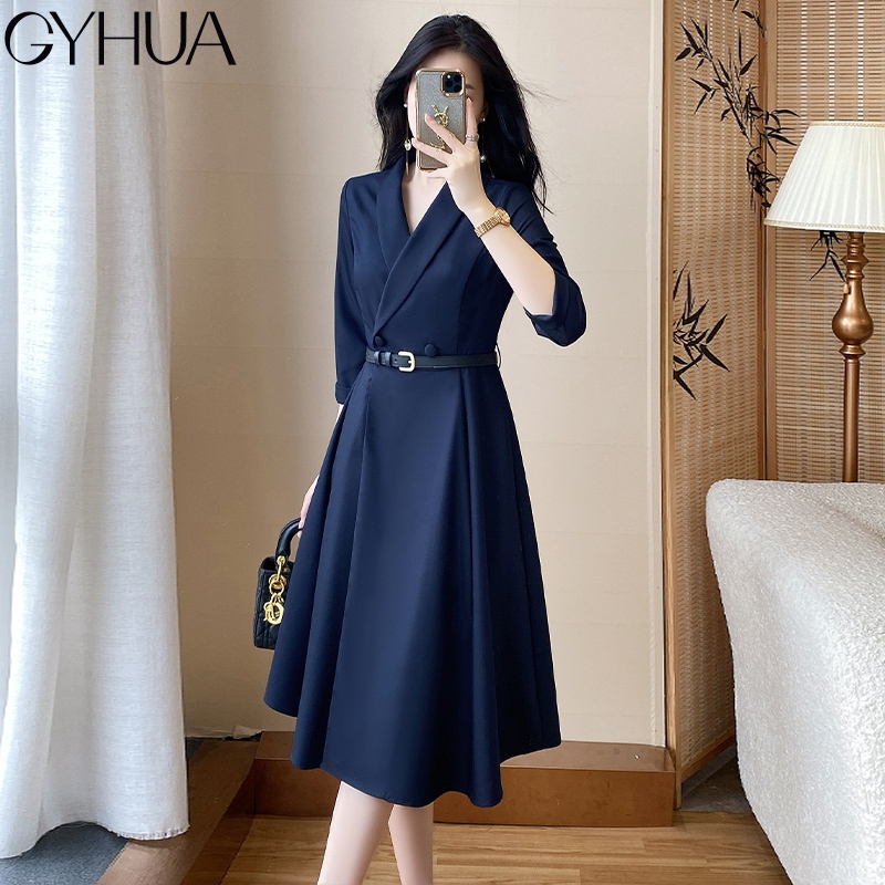 • Sản phẩm OE911: Váy dài tay màu xanh navy cao cấp có eo tôn dáng được phân phối với 1 phiên bản: Xanh