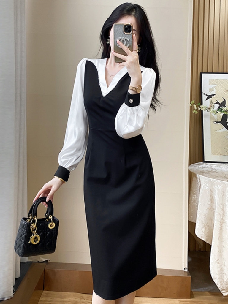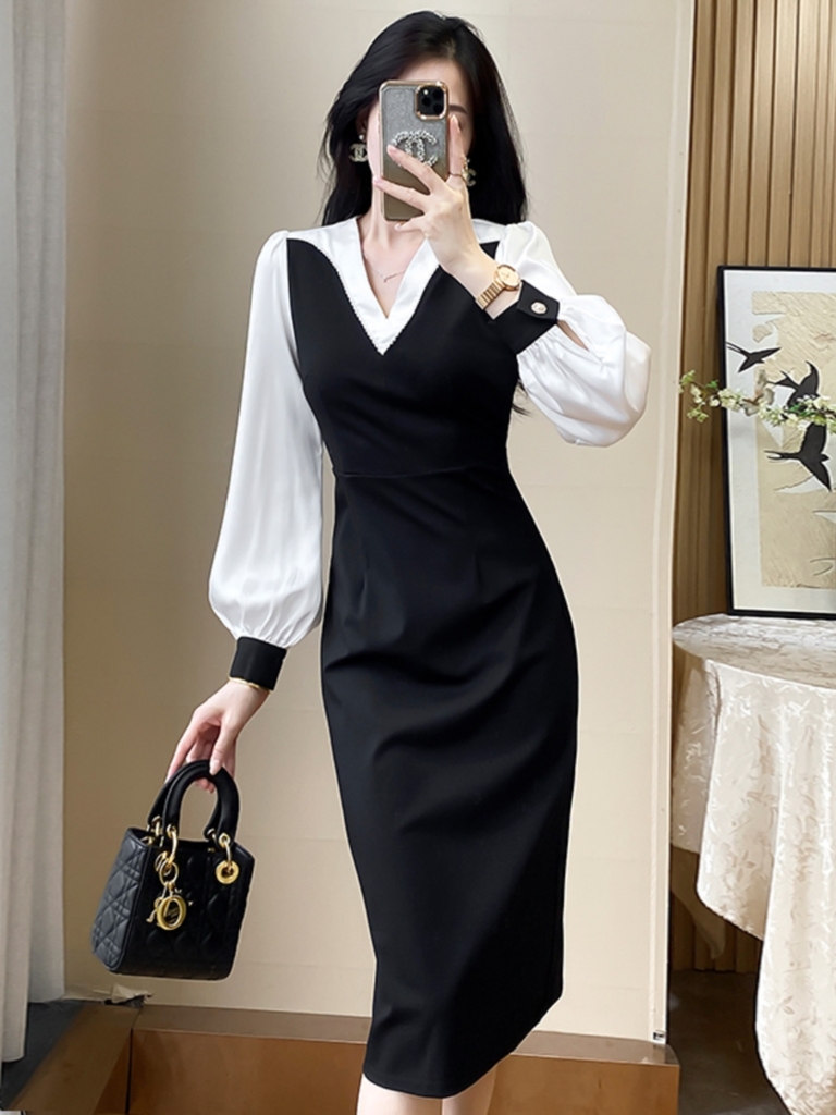 OE907: Váy dài tay màu đen cao cấp mùa thu OE907: Váy dài tay màu đen cao cấp mùa thu