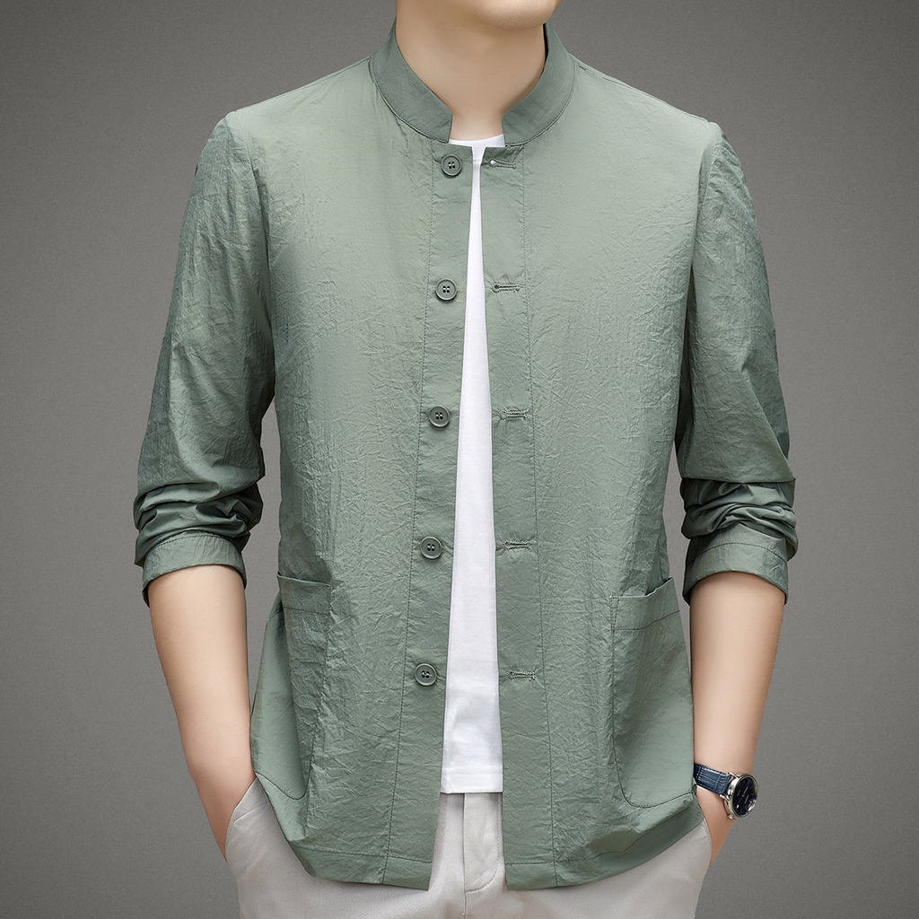 • Áo khoác chống nắng nam phong cách thiết kế cổ đứng lịch lãm nóng bức. Chất liệu lụa băng cao cấp (ice silk) mềm mại, mỏng nhẹ và siêu thoáng khí, giúp bảo vệ da khỏi tia UV mà vẫn giữ cảm giác mát lạnh khi mặc. Dáng vest cải tiến, vừa sang trọng vừa trẻ trung, thích hợp cho cả đi làm lẫn dạo phố. Thiết kế tinh giản, không họa tiết rườm rà, đậm chất thời trang Trung Hoa hiện đại. Phối hợp dễ dàng với quần tây, kaki hoặc jean, tạo nên phong cách thanh lịch và cá tính. Lựa chọn lý tưởng cho quý ông yêu thích sự chỉn chu và thoải mái
