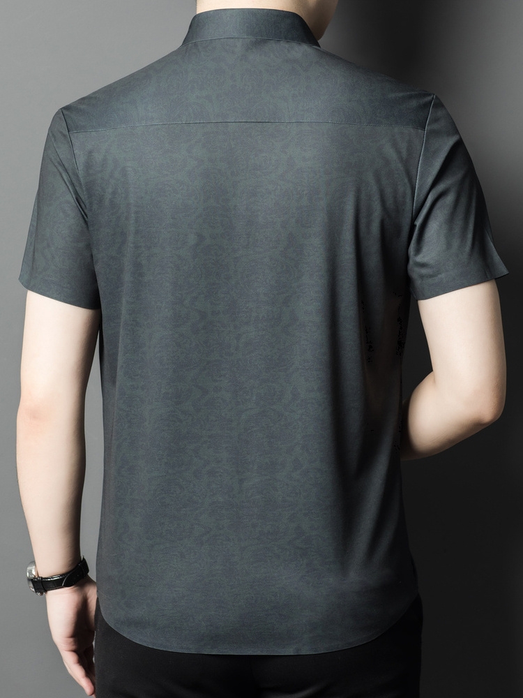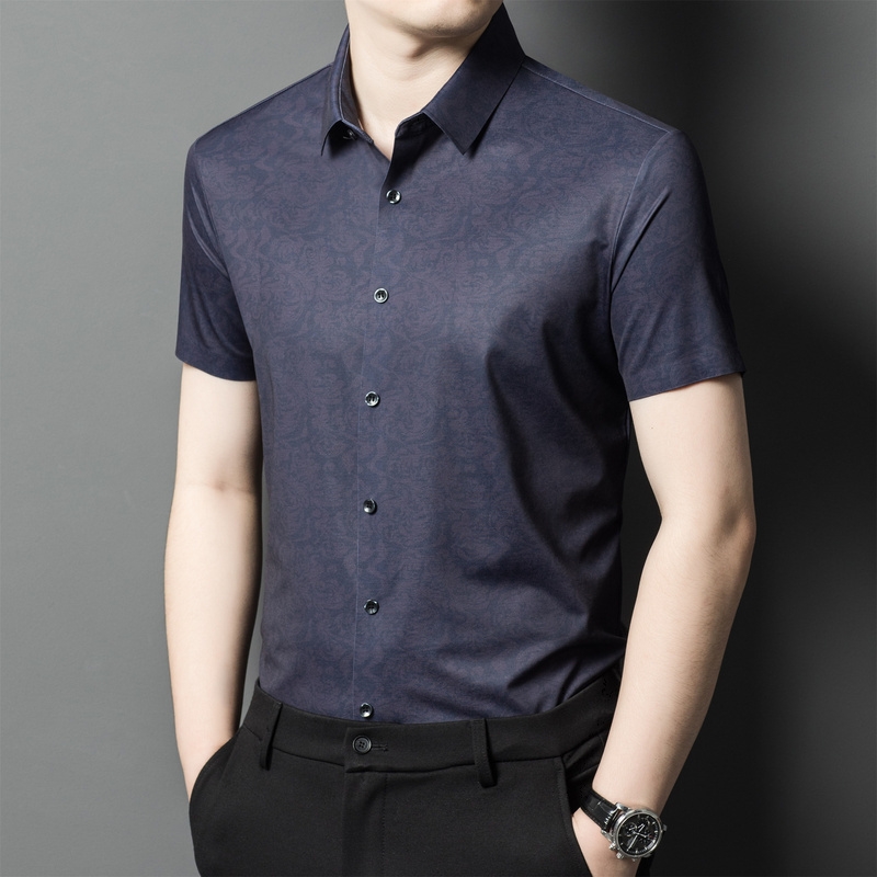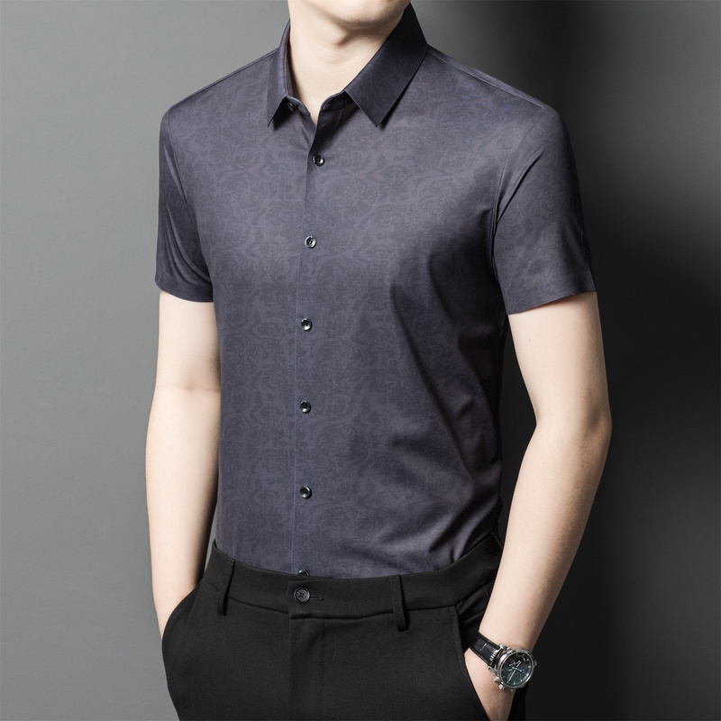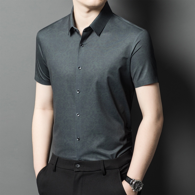 OE940: Áo sơ mi lụa tơ tằm tay ngắn nam cao cấp mỏng họa tiết tối màu thời trang