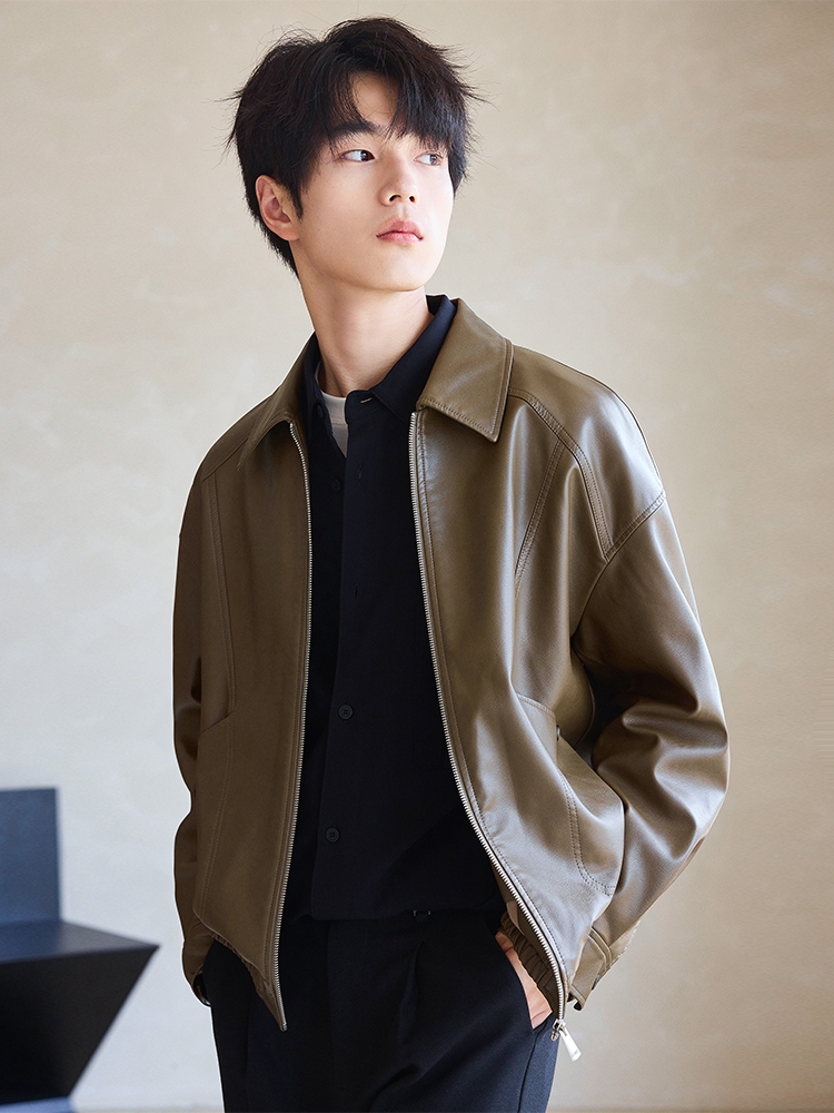 OE945: Áo khoác da PU mềm mại nam cao cấp
